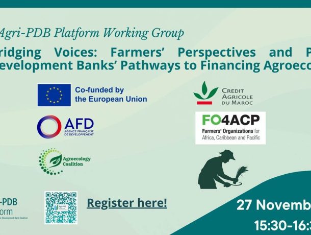 In conclusion, the webinar reaffirmed that agroecology should not be seen as an obligation but as a progressive evolution requiring flexible financing, robust technical support and strengthened cooperation between producers, banks and public partners. A new dialogue between farmers and financial institutions will be organised in the first half of 2026 to further explore these collaboration opportunities.