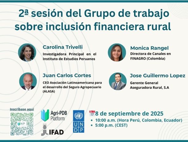 Working Group : Rural Financial Inclusion – French session (25 September) highlighted how agricultural insurance, supported by public–private partnerships, data, and field-level advisory, is a core component of inclusive rural finance and climate resilience. The Spanish session (8 September) showcased Colombia’s FINAGRO model, demonstrating how combining parametric insurance with timely credit and technical support can expand financial inclusion for smallholder farmers when products are tailored, payouts are fast, and trust is built.