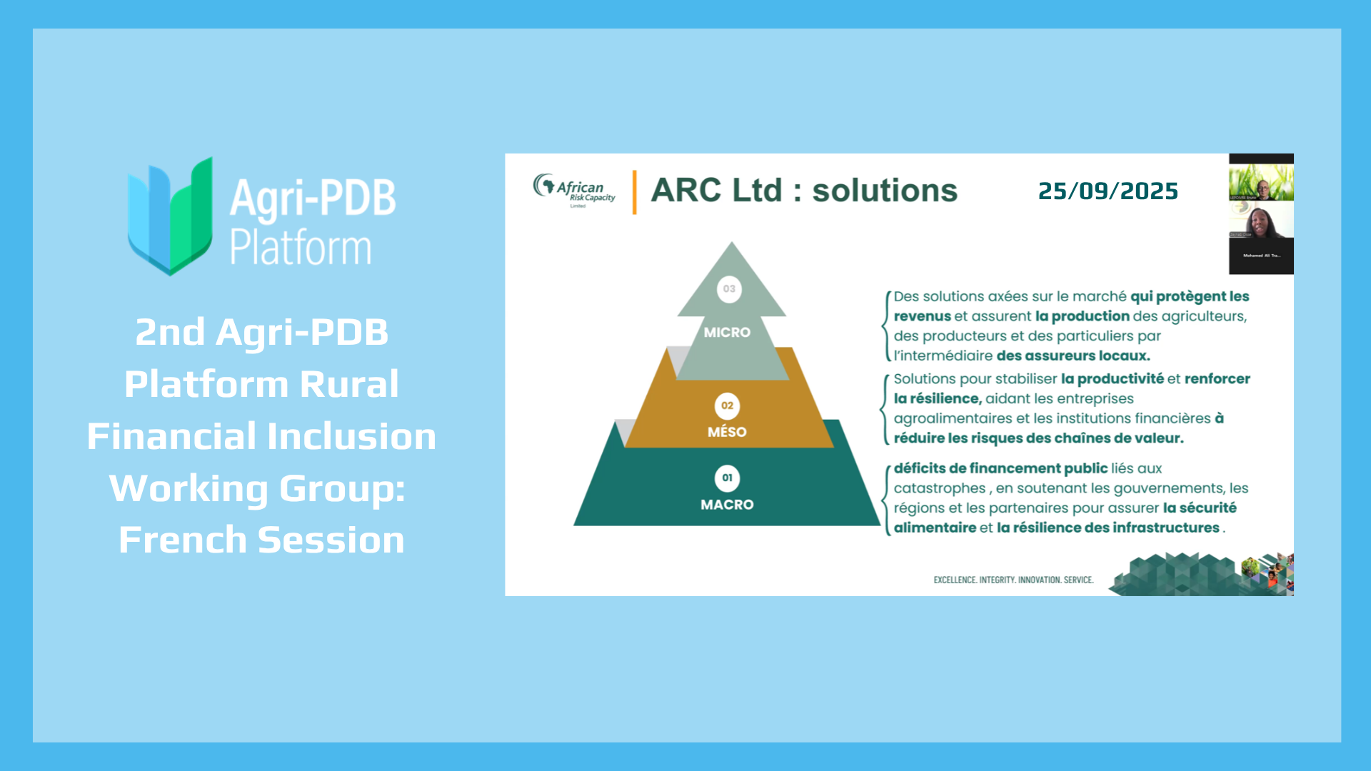 The session underscored the value of peer learning and collaboration among PDBs, insurers, and development partners. Stay engaged with the Agri-PDB Platform to access resources, share case studies, and join future Working Group sessions on inclusive rural finance.